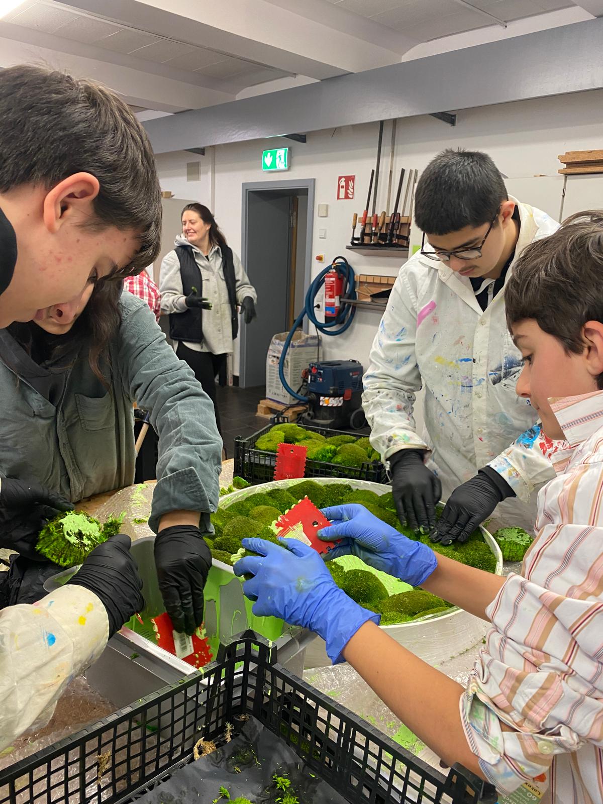 Für unser Schullandheim in Ristedt haben wir sechs Moospaneele für den großen Aufenthaltsraum bei der Firma Growing and Green bestellt. Bei der Produktion von vier der Paneele durften einige Schülerinnen und Schüler unserer Schule helfen.