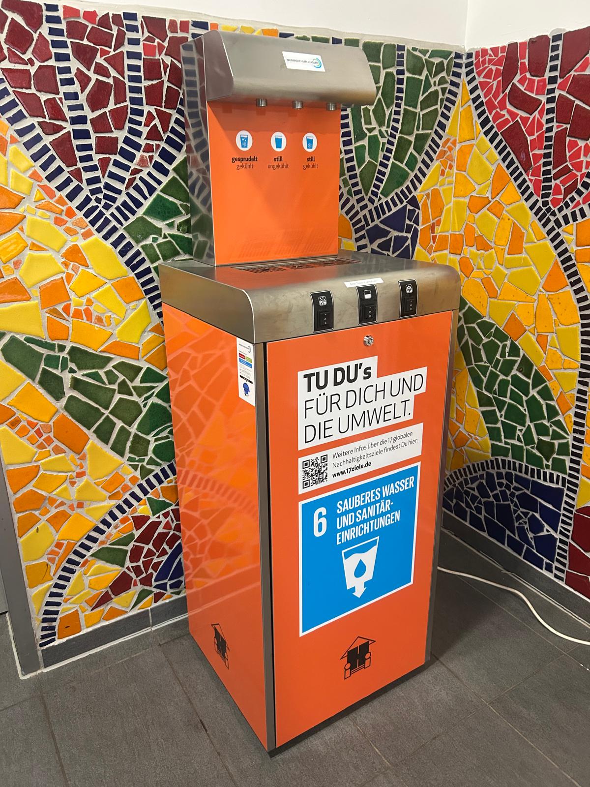 Es ist vollbracht. Heute, am 14.01.2026, wurde unser Wasserspender im Vorraum der Mensa an den Wasserzulauf und -ablauf angeschlossen. Die Stromzufuhr erfolgt aktuell noch über ein Verlängerungskabel, da die Steckdose erst noch erstellt werden muss.